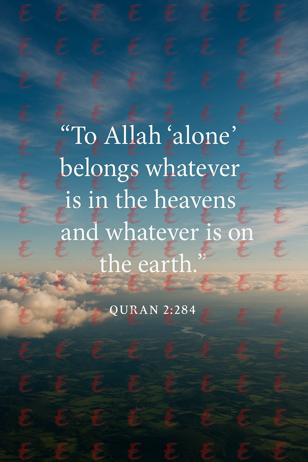 "To Allah 'alone' belongs whatever is in the heavens and whatever is on the earth." Quran 2:284
