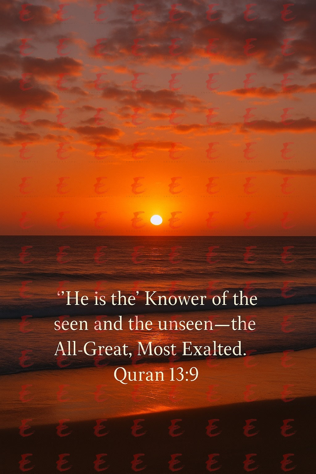 He is the' Knower of the seen and the unseen—the All-Great, Most Exalted. Quran 13:9
